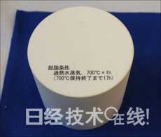 利用这种使用过热水蒸汽的脱脂工序获得成型体后,在同样的条件下对该成型体实施烧结处理,制造出了没有裂缝的正常烧结体(见照片)。而利用原来的脱脂工序制造的烧结体,有时会出现裂缝。