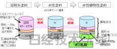 原来的采用聚乳酸乳液的水性植物型涂料在硬度、粘附性、抗腐蚀性、耐候性及创意性等方面存在课题。比如与基材的粘附性低,会形成脆性涂膜;聚乳酸加水分解沾水后,涂膜会变白;为使树脂颗粒靠近并热粘,要在100℃以上的温度下干燥,树脂外壳会变形等。(来源:日经BP社) ■日文原文