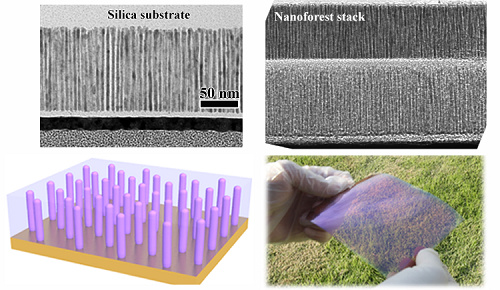 相关制备技术申请了国家发明专利,学术成果以Template-free growth of well-ordered silver nano forest/ceramic metamaterial films with tunable optical responses 为题发表在《先进材料》(Adv. Mater., 2017, DOI: 10.1002/adma.201605324) 上,该项工作不仅体现了所内合作,即跟研究员黄峰、都时禹在生长机理和第一性原理计算方面的合作,而且跟哈尔滨工业大学物理系教授宋瑛林在光学领域进行了深度的跨单位合作。该项工作得到国家自然科学基金、浙江省自然科学基金、浙江省重点实验室和宁波市科技创新团队等项目的资助。(来源:中国科学院宁波材料技术与工程研究所)
