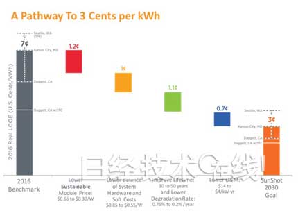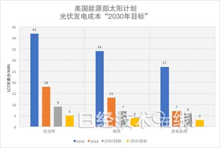 2016年11月,美国能源部(Department of Energy:DOE)发布了“2030目标”,表示“要在2020年至2030年之间,使光伏发电的成本减半”。