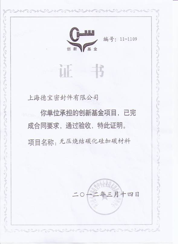 上海德宝密封件有限公司“创新基金项目”通过验收