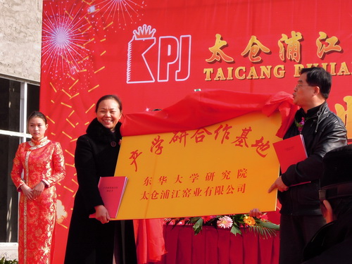太仓市浮桥镇及当地政府有关部门领导、上海硅酸盐工业协会领导、上海东华大学材料学院领导参加了仪式,并作简短致词。在公司新址落成仪式上,太仓浦江窑业有限公司与东华大学研究院举行了“共建产学研产业基地”签约仪式,以及上海硅酸盐工业协会授予太仓浦江窑业公司“会员单位”牌证的仪式。