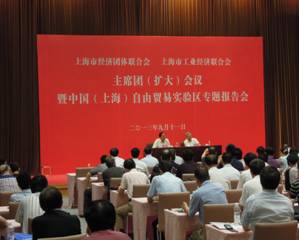 上海巿经济团体联合会、上海巿工业经济联合会,于2013年9月11日上午,在上海市经济管理干 部学院,举行主席团扩大会议暨专题报告会。会议特邀全国政协常委、上海市政府参事室主任王新奎作有关“中国(上海)自由贸易实验区”的专题报告。上海巿经济团体联合会会长蒋以任主持了报告会。来自巿经团联、市工经联的有关领导,以及来自本市行业协会和部分企业代表参加了报告会。