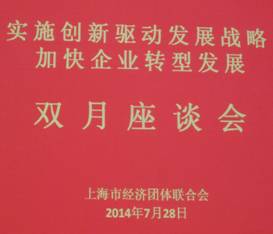 2014年7月28日下午,上海市经济团体联合会,在上海市经济干部管理学院召开今年第三次双月座谈会。会议主题是:实施创新驱动发展战略,加快企业转型发展。来自本市行业协会、部分企业界的代表参加了座谈会。我会也派人参加了会议。
