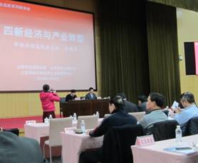 上海市企业联合会、上海市企业家协会、上海市经济和信息化发展硏究中心,于2015年1月20日下午在上海市经济管理干部学院,联合举办专题报告会,邀请上海市经济和信息化委员会李耀新主任做报告,标题为“以‘四新’经济促产业创新转型发展”。报告讲述了三个方面:-、当前经济发展新常态新趋势;二、加快推动“四新”经济发展;三、上海产业创新转型有关思考。