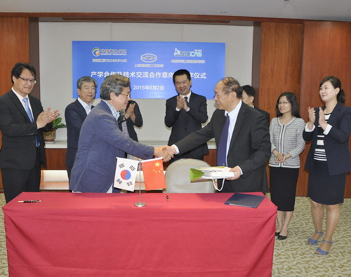 座谈会上,宋力昕所长对韩国精细陶瓷协会代表团一行的来访表示热烈欢迎,他回顾了上海硅酸盐研究所、上海硅酸盐工业协会同韩国精细陶瓷协会、韩国江原道新材料技术产业园等多年的友好往来历程,希望通过科研及产业合作交流,进一步推动中韩先进陶瓷业的发展。王东会长向代表团介绍了上海硅酸盐所的主要研究领域和未来发展概况,来访的韩国精细陶瓷协会、韩国江原TP陶瓷新材料事业团、韩国陶瓷技术研究院也分别介绍了各自的事业发展状况。早在十年前韩国江原TP就与硅酸盐研究所签定了“产学合作及技术交流合作意向书”,此次来访,双方签定了新一轮的合作意向书,既是一个阶段性总结,更是一个全新的起点,将会继续推动中韩在先进无机材料产学研方面的共同发展。在交流会谈阶段,双方就感兴趣的氧化锆、氮化铝、大尺寸陶瓷、晶体、涂层等热点技术问题进行了深入的探讨,双方都表达了希望加强在先进材料领域开展富有成效的合作,通过定期交流、联手研发,为双方科研人员搭建交流平台,不断增进相互了解,寻找多层次的合作机会。