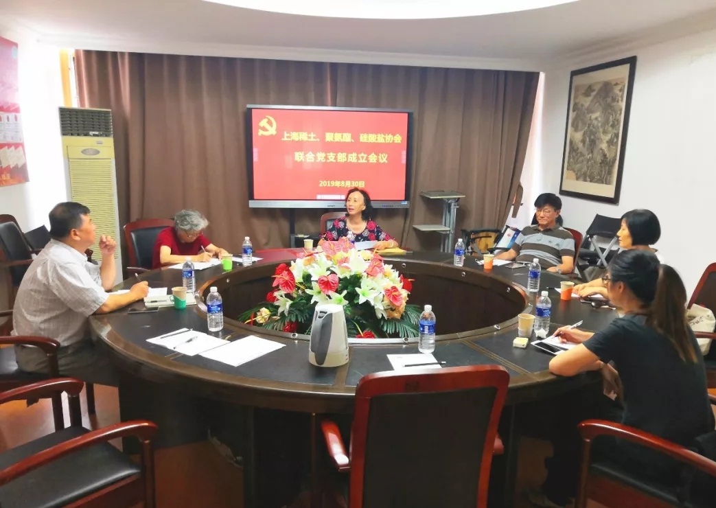 2019年8月30日上午,上海稀土、聚氨酯、硅酸盐协会联合党支部成立会议在上海师范大学召开,会议由中共上海市工业经济联合会党委组织委员兼第四联合党支部书记苏宝艳同志主持,出席会议的有,上海市稀土协会党员吴建思、周襄瑶、入党积极分子崔中倪,上海市聚氨酯工业协会党员许国清、许菊芳,上海硅酸盐工业协会党员刘薇。会上,苏书记首先就为何要成立联合党支部,从党组织发展要求和发展条件进行详细说明,并向聚氨酯协会和硅酸盐协会传达了中共上海市工业经济联合会党委关于党建联络员的批复,以及传达《关于成立上海稀土、聚氨酯、硅酸盐协会联合党支部的通知》的批复文件,明确吴建思同志为联合党支部召集人,上海稀土、聚氨酯、硅酸盐协会联合党支部正式成立。